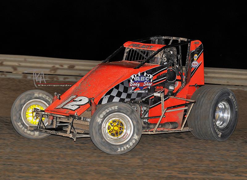 A Peoria, Arizona native, former Arizona state Sprint Car titlist, and two-time Canyon winner in 2011; Josh Pelkey stormed forward on the high side from his 16th place starting spot, passing ASCS Southwest king Rick Ziehl late in the 25 lap main event to snare his first Canyon score of the 2012 campaign aboard Robbie Allen’s Advanced Engine powered ABC Body Shop no. 12.