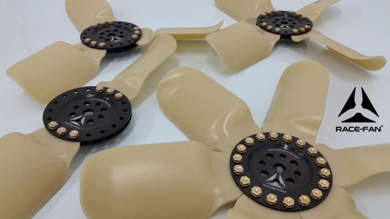 To say we are impressed with the thought and tech in these ultra light weight fans is an understatement. Made from extremely durable high-impact and high-temperature fiber reinforced Zytel® the composite blades and their accompanying 6061-T6 aluminum universal center hub allow for a sizable weight savings over conventional steel fans. In addition, the universal hub allows the fan to be tunable for varying weather conditions as a racer can set the fan up using two, three, four, or six blades. An added bonus is the fact that on the rare occasion where a single blade is damaged from heavy impact or other misfortune, the single blade can be replaced saving both time and hassle versus replacement of an entire fan.
