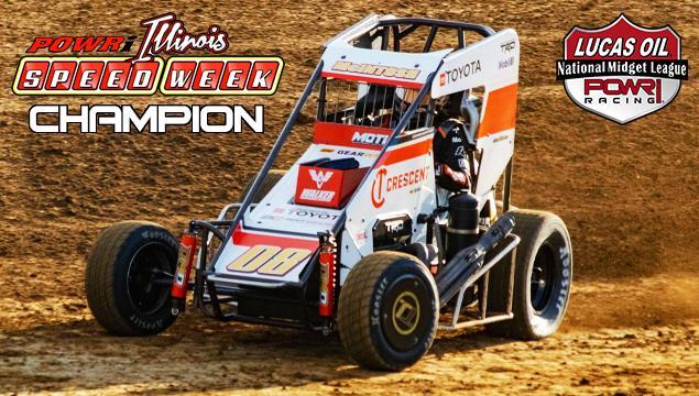 Final Top-Ten for the Lucas Oil POWRi National Midget League 2022 Illinois SPEEDWeek Championship Standings: 1. 08-Cannon McIntosh, 2. 01-Bryant Wiedeman, 3. 97K-Kaidon Brown, 4. 97-Brenham Crouch, 5. 61-Jacob Denney, 6. 83-Dominic Gorden, 7. 87-Jace Park, 8. 25K-Taylor Reimer, 9. 21K-Karter Sarff, 10. 5-Gavan Boschele.