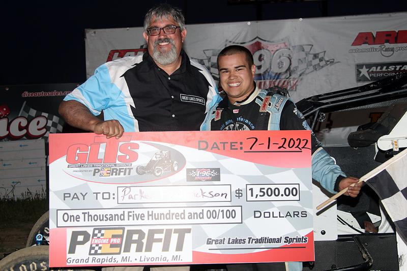 Lake Odessa, MI – Parker Frederickson (Kokomo, IN) gets back on track with a feature win with Great Lakes Traditional Sprints presented by PErfit. With some bad luck last weekend, Frederickson rolled into I-96 Speedway with his car ready to race tonight, driving home with the big $1,500 check!
