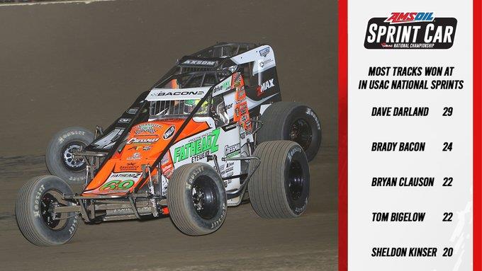 In 2022, Brady Bacon moved into #2 all-time by winning at 24 different tracks in his USAC AMSOIL INC. National Sprint Car career.