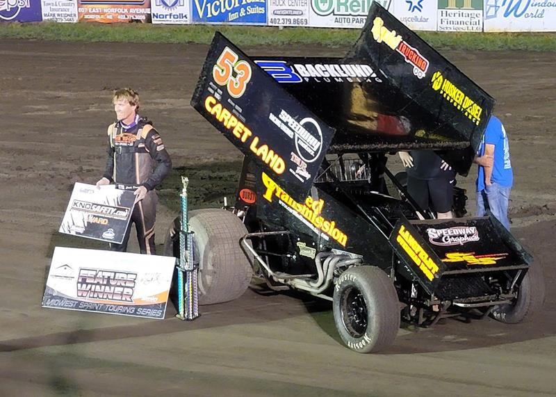 Dover got an assist from Backlund Plumbing to be able to compete on Saturday at Off Road Speedway in Norfolk, Neb., where he placed second in a heat race to again move into the Midwest Sprint Touring Series feature redraw. This time Dover drew the No. 5.