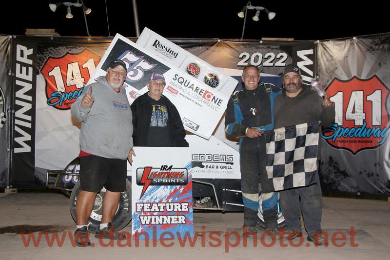 Then on the next night, Sunday 9-4-22, 15 cars made the trip north for a Sprintacular show at 141 Speedway which highlighted all 3 IRA divisions. Mike Neau continued where he left off by establishing quick time of the night during qualifying. Heat races were won by Mark Heinert and Max Brannam. The feature then saw the trio of Brannams lead the field to green as Ron and Max made up the front row while Tim started 3rd. Ron Brannam would lead the first 4 laps until 4th starting Heinert would get by and start to take a commanding lead early. On lap 8, 6th starting Neau would move into 2nd place as battles were happening all over the speedway. Heinert again was challenged with heavy lap traffic during the 20 lap non-stop event but nonetheless had amassed a nearly 3 second lead over Neau by lap 13. That lead proved to be too much for Neau as he was only able to cut 2 seconds off the lead in the last 4 laps but still came up nearly 4 tenths short as Heinert would claim his second victory of the season – sweeping both 141 events this year. Neau would finish 2nd and pick up the evening’s hard charger at +4, while the K9 of Andrew Kiedrowski would finish 3rd. The weekend wins by Neau and Heinert means their Dream Chaser Racing team owned by Larry Neau would sweep the weekend.
