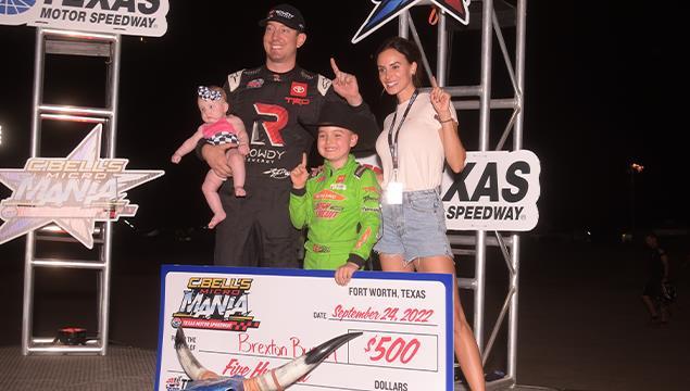 “I’m really happy, Mattix is tough, when I heard him on the inside, I knew I had to rip the top-side to the win,” said a triumphant and two-time weekend feature winner Brexton Busch at Lil’ Texas Motor Speedway in C. Bell’s Micro Mania with the Jr. Sprints on Championship Night.