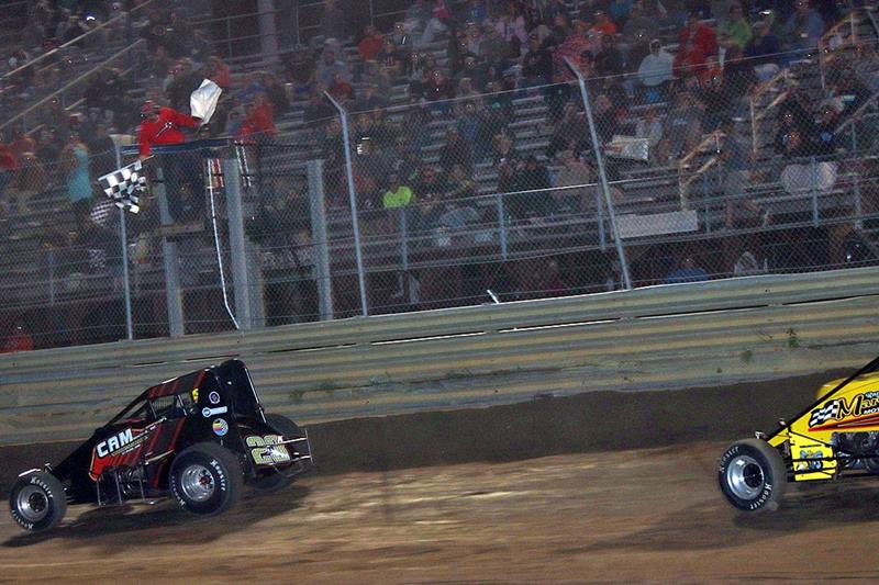 Waynesfield, OH - On night 2 of our Memorial Weekend double header, we had 21 cars checked in. Thomas Meseraull (San Jose, CA) got around Matt Westfall (Pleasant Hill, OH) in lap 9 and went on to lead the rest of the race, however Meseraull was never able to break away and shake Westfall. As the checkered flag flew, Meseraull beat Westfall to the finish line by 34 hundreths of a second.