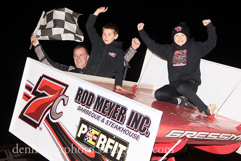The victor of the night was "Ohio Gasman" Phil Gressman from Fremont, OH, who drew the second position in the redraw. Luke Griffith from Sandusky, OH, secured the pole position, while Kobe Allison from Lima, OH, began in the third spot. Gressman was able to take the lead right at the start and hold his own the rest of the race! It was a close run between Griffith and Gressman, until about half way into the race Griffith has trouble on turn three falling of the back of the track with his wing flying in the air. Fortunately, Griffith did not sustain any serious injuries. In the final laps Gressman had secured his 1st place spot, and it for a battle for second and third. Kobe Allison finished second and Nate Dussel from Bradner, OH, finished 3rd.