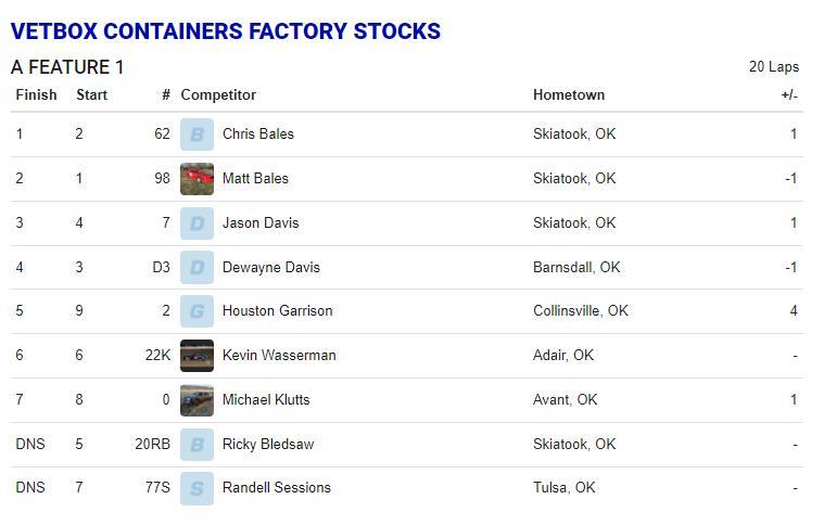 Osage Casino Hotel Tulsa Speedway Opening Night Winners and point standing. We want to thank all the racers and fans for coming out and supporting us! We are looking forward to seeing you all April 12th for our next Fight Night Lights points race.