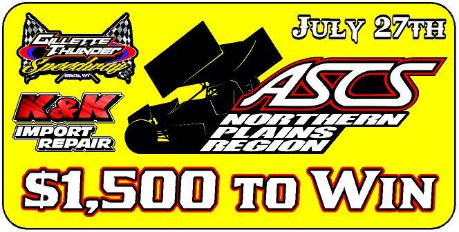 $1,500 to win ASCS Northern Plains Region Sprint Car Tour is coming to GTS July 27th sponsored by K&K Import Repair