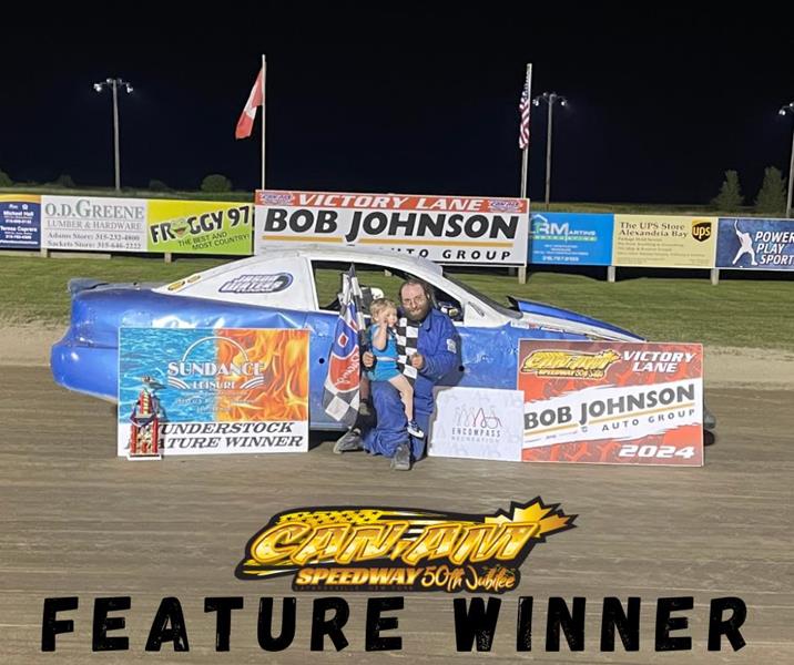 The Sundance Leisure Thundercar division saw a green to checkered 15 lap feature go, with Anthony St. Mary Jr. jumping to the point over Tony Frezzo. The top two drivers battled hard throughout the event with St. Mary running the inside lane while Frezzo used the outside portion of the speedway. While the top two made it their own race in front, defending track champion Francis White was on the move in a borrowed ride. White took over the St. Mary back up car and charged to the front, eventually taking 4th with a few laps to go. Up front Tony Frezzo made one final run at the leader on the last lap, but Anthony St. Mary Jr. had everyone covered on this night, scoring his division leading third win of the season. Tony Frezzo, Jared Gilson, Francis White and points leader Damien Bechler completed the top 5.
