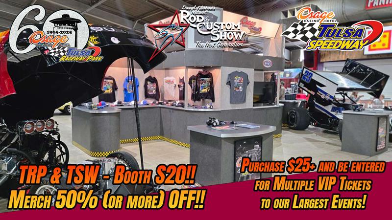 Osage Casino & Hotel Tulsa Raceway Park and Tulsa Speedway is set up at Darryl Starbird Car Shows in Booth S20!