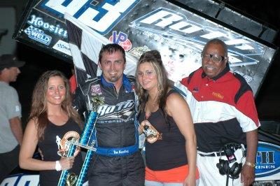 Brandon, SD (6-23-13) – In true "Outlaw" style, Tim Kaeding dropped in and claimed the $3000 winner's share with a victory in the 410 Outlaw Sprint class Sunday night at Huset's Speedway. Kaeding raced past Terry McCarl in heavy traffic with just 2 laps remaining in the 25 lap event to secure the win. Jody Rosenboom, driving the Denny Wasmund owned #5w took advantage of his front row starting position and lead all laps enroute to the 360 Sprint feature win while Gary Brown, Jr. found his way to Huset's Speedway's victory lane for the 1st time this season in Late Model Street Stock action. Dustin Kruse won the USRA B-Modified feature for the 2nd time this year and Dylan Fitzpatrick recorded his first ever Huset's Speedway Hobby Stock win. Tonight's sprint car payouts included bonus money courtesy of Sioux Falls Ford.