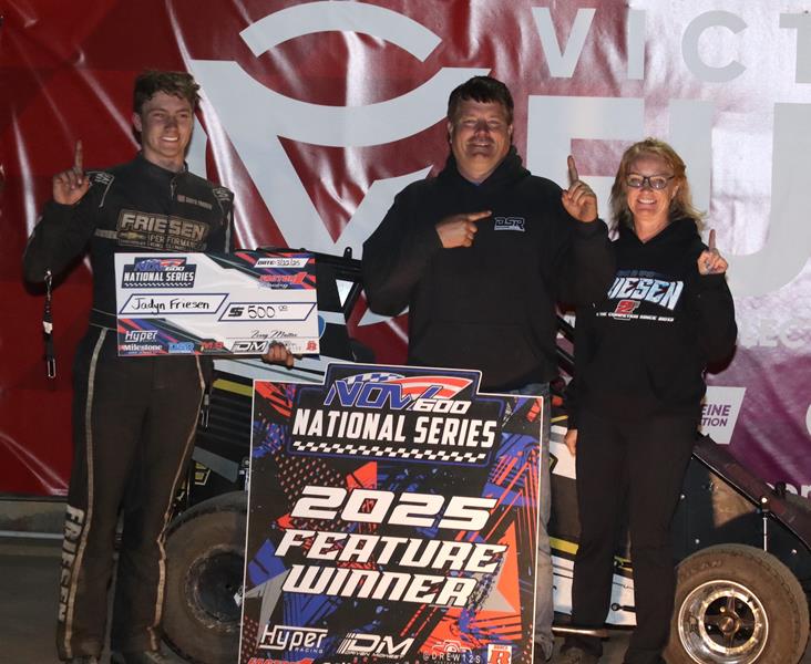 NOW600 Non-Wing: Big R Stores A-Main (25 Laps): 1. 2F-Jadyn Friesen[11]; 2. 14C-Cannon McIntosh[1]; 3. 12C-Chase Spicola[3]; 4. 11-Chris Cochran[13]; 5. 71N-Jeffrey Newell[18]; 6. 05-Kris Carroll[6]; 7. 14A-Chris Andrews[9]; 8. 20Q-Brecken Reese[2]; 9. 72-Sam Johnson[4]; 10. 21-Michael Cawvey[7]; 11. 14K-Kyle Hooper[8]; 12. 14M-Mitchel Moles[12]; 13. 00T-TJ Stark[20]; 14. 8-Josh Marcham[15]; 15. 71-Tate Gurney[17]; 16. 1S-Haidyn Hansen[10]; 17. 22-Hank Soares[19]; 18. 20B-Chase Bolf[14]; 19. 83H-Cullen Hutchison[5]; 20. 17G-Isaiah Garcia[16].