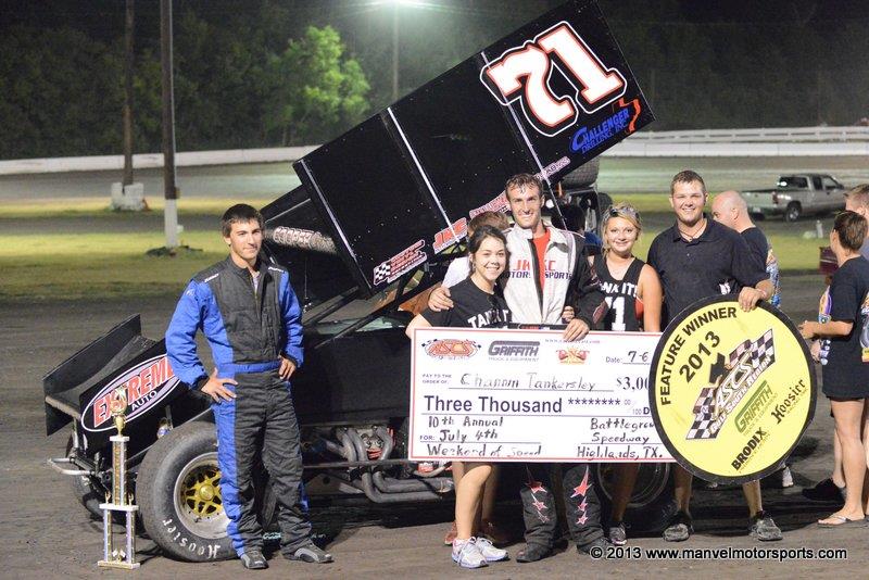 Bryan Hulbert - HIGHLANDS, Texas (July 6, 2013) The Griffith Truck and Equipment Gulf South Region ended their three day Independence Day Weekend at the Battleground Speedway on Saturday with Channin Tankersley going three deep with Kevin Ramey in slower traffic to grab the win off the final turn.
