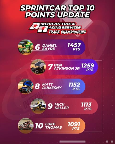The American Tire & Racing Services Sprintcar Track Championship battle is heating up! Michael Stewart continues to hold the lead, but there’s been some big moves in the standings: