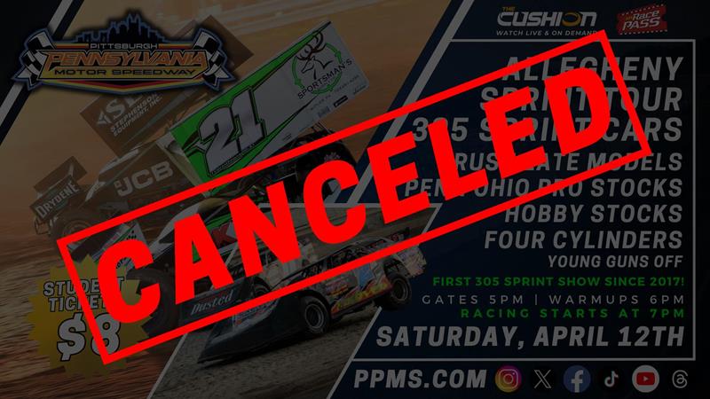 IMPERIAL, PA – Pittsburgh Pennsylvania Motor Speedway (PPMS) has officially canceled the racing event scheduled for Saturday, April 12, due to saturated grounds and below-average temperatures. Track conditions are unsuitable for competition, prompting the delay of the speedway’s 47th regular season opener.