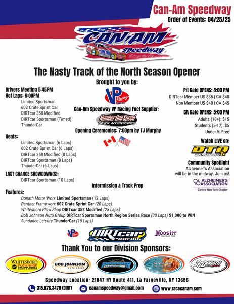 • Can-Am Speedway is an official partner of Dirt Empire Magazine. Each issue of Dirt Empire Magazine is filled with dirt track racing photos, stories, interviews and more! Dirt Empire Magazine is dedicated to dirt track racing. Pick up your copy right here at the Can-Am Speedway Novelty Shop or go online: Dirt Empire Magazine