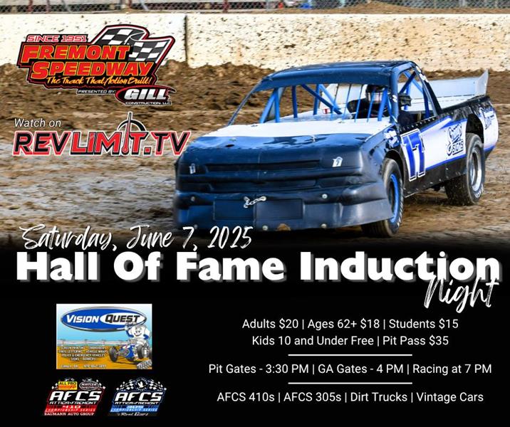 Join us this Saturday, June 7th, for Vision Quest Hall of Fame Induction Night. Gates will open at 1 p.m. for this year's induction, and the induction ceremony will start at 2 p.m. under the covered grandstands.