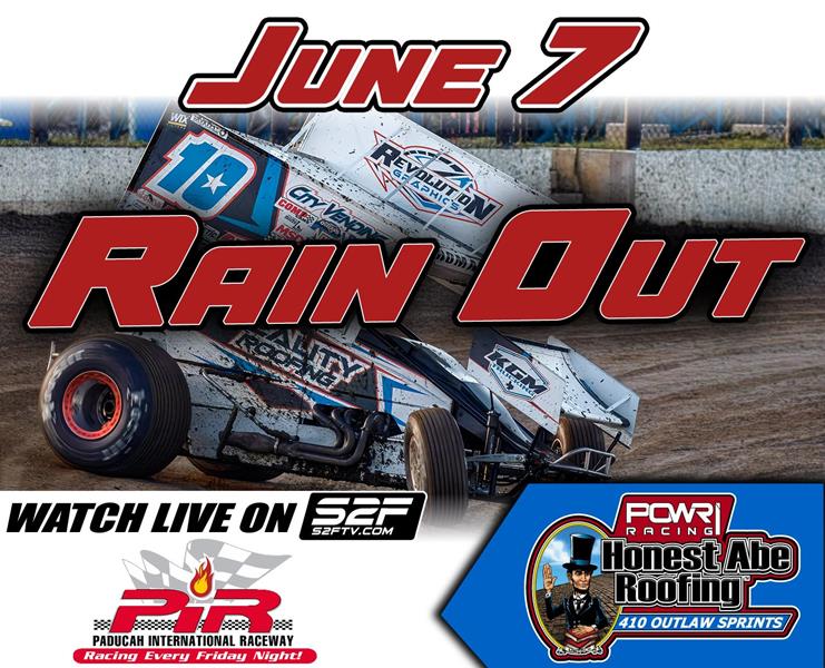 Paducah, KY (6/5/25) Due to continued inclement weather and already saturated grounds, the scheduled appearance of the POWRi Honest Abe Roofing 410 Outlaw Sprint League at Paducah International Raceway on Saturday, June 7 has been officially canceled by track and series officials.