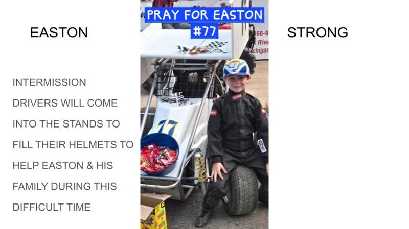 At intermission drivers will go to the stands to “Fill the Helmets” to help Easton Winling and his family during this difficult time. Easton was seriously injured in his Riverside Auto Group Junior Mini Sprint race last Saturday. The family is grateful for the outpouring of support and prayers. Please continue to pray.