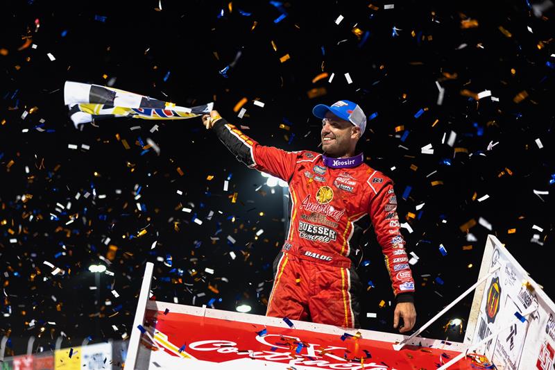 The victory during the $20,000-to-win race marked his third career World of Outlaws NOS Energy Drink Sprint Car Series triumph and his first with the Series at the high-banked oval, coming a night after he led nearly three quarters of the laps before finishing second during the $100,000-to-win Huset’s Hustle.