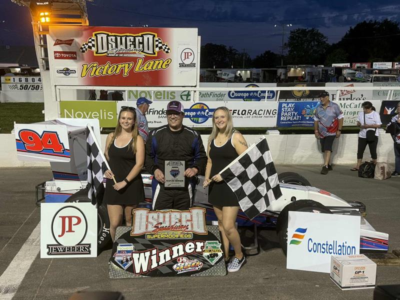 OSWEGO, NY (June 22, 2025) - Brockville, Ontario’s Logan Rayvals etched his name into Oswego Speedway history Saturday night, becoming the first Canadian driver to win a Novelis Supermodified feature at the Steel Palace since Randy Ritskes over a decade ago on July 19, 2014.