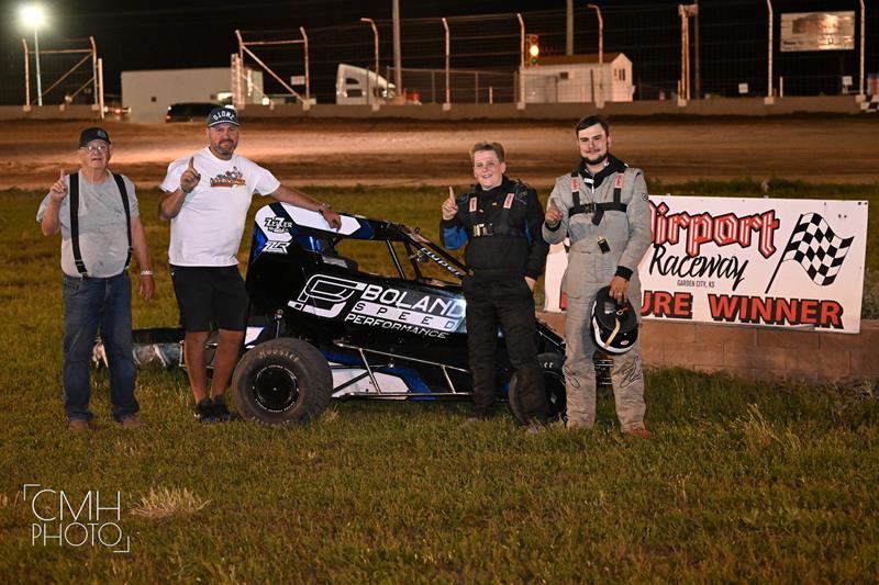 GARDEN CITY, Kan. (June 22, 2025) - Ethan Larsen, Zac Zeller, Mal Mullens, and Axten Larsen landed victory on Saturday night at Airport Raceway in NOW600 Weekly Racing competition.