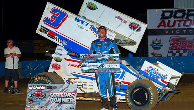 Terre Haute, IN. (6/22/25) Ayrton Gennetten would set sail leading the final sixteen laps with the POWRi Honest Abe Roofing 410 Outlaw Sprint League, running in conjunction with the POWRi Honest Abe Roofing FAST on DIRT Sprints presented by Ti Performance, in Night Three of the Hoosier State Hustle presented by Start2Finish TV to notch his first seasonal victory and earn the hard-fought feature victory at Terre Haute Action Track.
