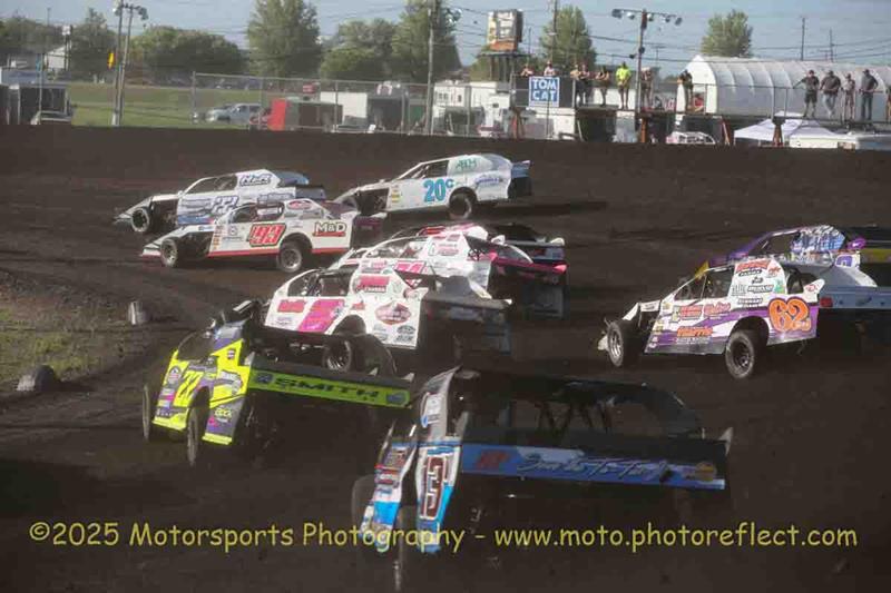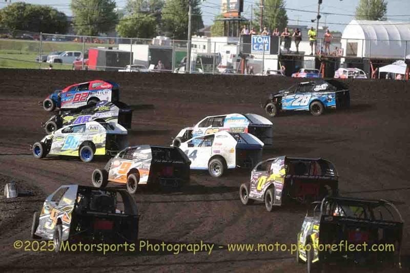A plethora of racecars totaling 188 entries graced the grounds of Iowa’s Action Track on Saturday Night. Rain shortened the June 14th program leading to racing action starting off with make-up B mains and A-Features for the Farley’s Tire Smackdown night.