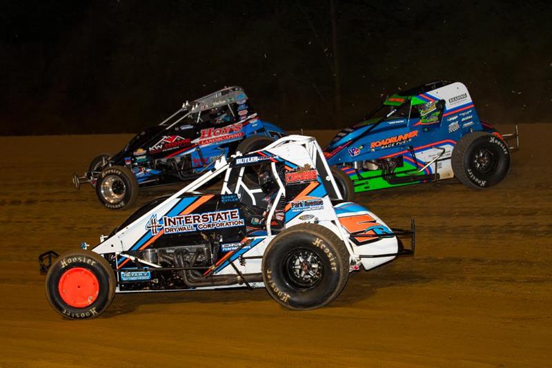 Bobby Butler, of Milford, NJ, was not to be denied. He powered the Premier Lathing #5B under Nicole Flood’s twin checkers to claim his first-ever USAC East Coast Sprint Car victory, presented by Baer Den Farm. Drevicki came home second from 8th, while Aikin charged from 11th to finish third.