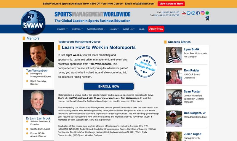 Whether you're a lifelong fan, a racer thinking long-term, or a marketing, sponsorship, or event professional ready to break into the industry, the Motorsports Management course from Sports Management Worldwide (SMWW) is your fast track to a career in the sport you love.