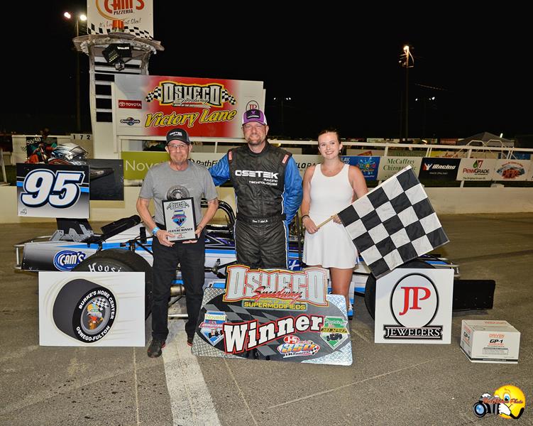 OSWEGO, NY (July 6, 2025) - After a first-time winner stole the spotlight in the opening Twin 40, the second Novelis Supermodified Twin presented by Burke’s Do It Best Home Center saw a familiar face return to victory lane in dominant fashion last Saturday at the Oswego Speedway, but this time with a deeper meaning behind the win.