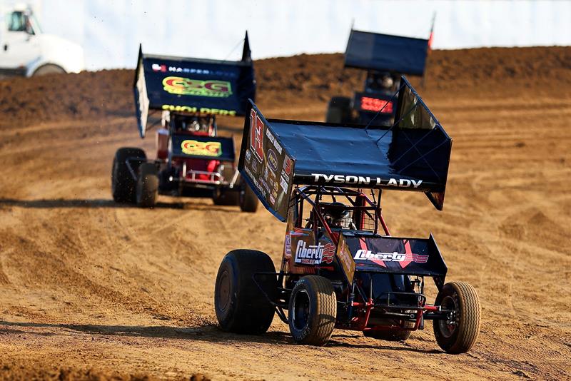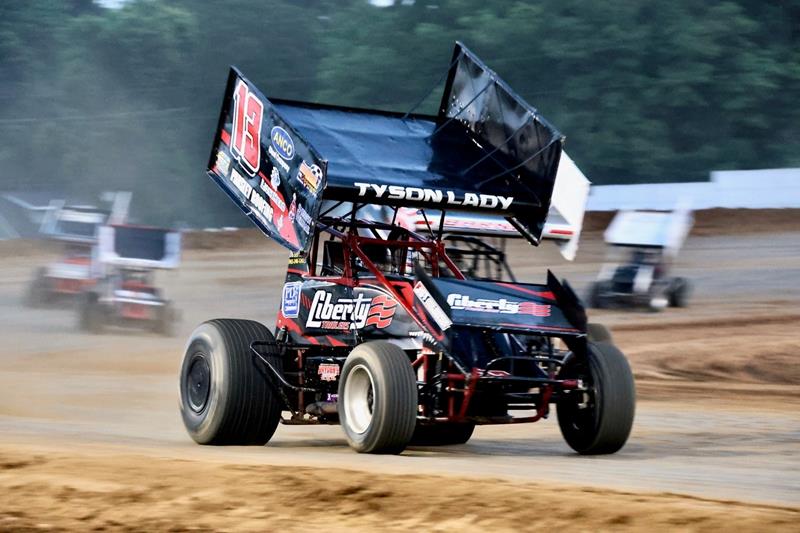 With his apprenticeship served in 2023 Lady moved to the 305 sprint cars. As a Fillmore, Indiana resident and a 2025 graduate of South Putnam High School he considered Lincoln Park Speedway his home track. However, Mother Nature dictated that his sprint car debut came at Bloomington. It was Tyson’s first trip to the red clay. “My first race I qualified pretty decent,” he recalls, “and I started in the back of my heat race, and I think I actually passed a car. That put me smack dab in the middle of my first feature. I can tell you my mom was freaking out.”