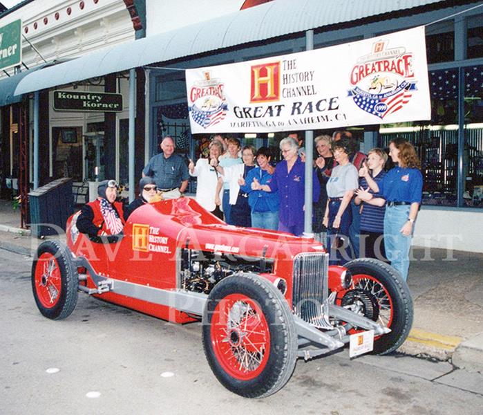 We rolled the car out early on a Wednesday morning in front of McRae’s Granbury museum. A century ago, McRae would have been the guy who brought the circus to town; he is a born promoter with a keen ability to attract a crowd, and then play to it. With a noisy sendoff by a dozen or so locals, he spun the rear tires of the Special and we were on our way.We rolled the car out early on a Wednesday morning in front of McRae’s Granbury museum. A century ago, McRae would have been the guy who brought the circus to town; he is a born promoter with a keen ability to attract a crowd, and then play to it. With a noisy sendoff by a dozen or so locals, he spun the rear tires of the Special and we were on our way.