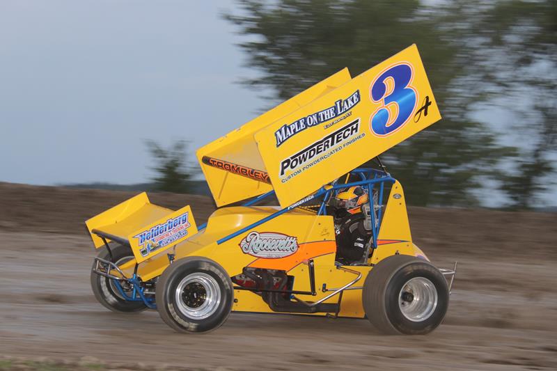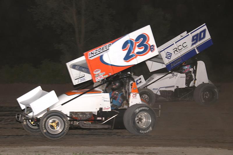 Behind Smith, the racing throughout the field was intense, with traffic sometimes fanning out three- and four-wide on a fast, challenging track surface. The father-son duo of Floyd and Travis Billington mixed it up with Holcomb, Jeff Trombley, Moran, Chris Donnelly, point leader Matt Tanner, and others as positions were swapped every lap.