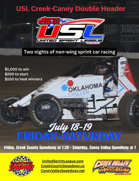 By John Rittenoure - GLENPOOL, Okla. (July 14, 2025) - Following a month off the Ortco, Inc. United Sprint League presented by Same Day Auto Repair returns to action this weekend with back-to-back events at Creek County Speedway and Caney Valley Speedway.