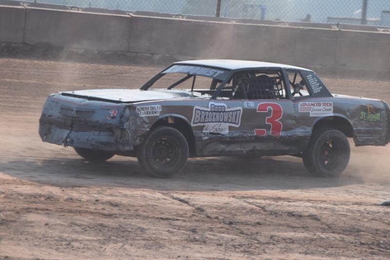 In the street stock class, Brayden Lundquist picked up his third feature win of the season. Ben Buckland came in second and won his heat race. Qwentin Johnsen finished third and Eric Mathieson and Tony Begovac rounded out the top five. Cody Turner won the other heat race.
