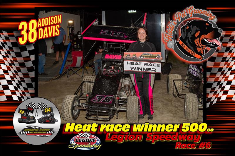 Heat race winners included #38 Addison Davis and #5k Adam Flewelling in the 500cc class, and #29 Mark Wiggett and #17N Adam Norton in the 600cc class.