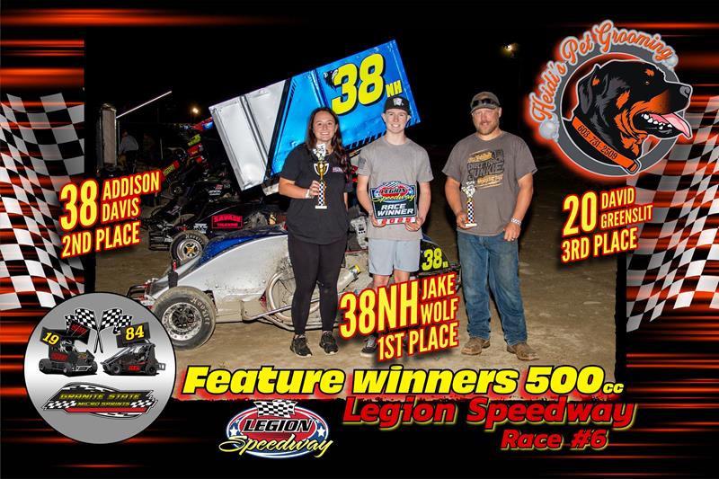In the 500cc feature, rookie sensation #38NH Jake Wolf continued his incredible run, snatching his third win of the season and an impressive second in a row! The "girl power" was on full display with #38 Addison Davis securing a strong second place finish, while rookie #20 David Greenslit celebrated his first podium finish of the season with a solid third.