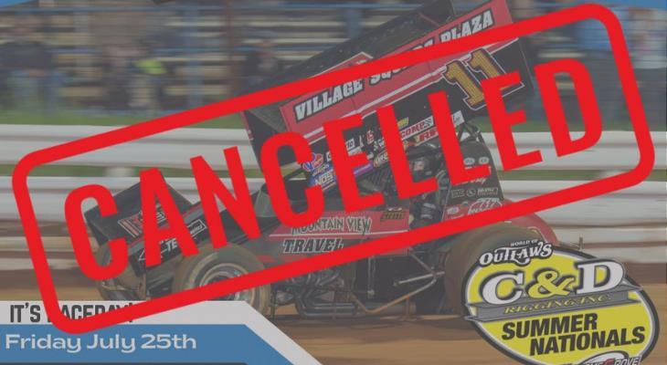 Mechanicsburg – Rain forced cancellation of the first night of C & D Rigging Summer Nationals action for World of Outlaws sprint cars at Williams Grove Speedway on Friday night.