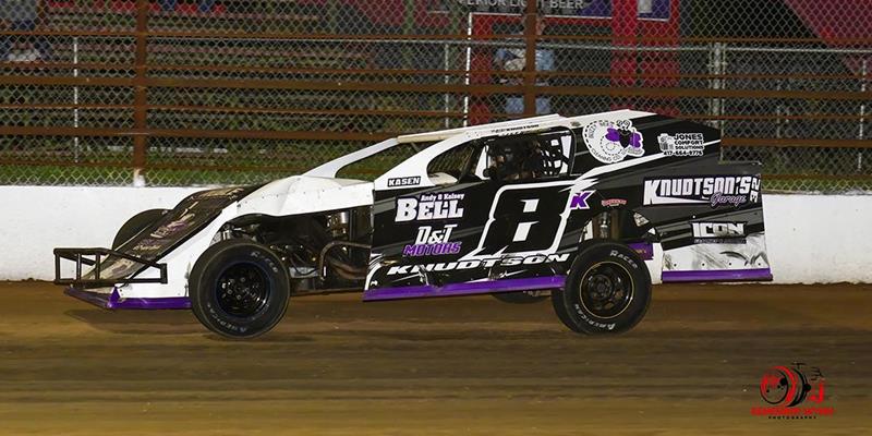 A Feature 1 (20 Laps): 1. 8K-Tyler Knudtson[1]; 2. 7-William Garner[5]; 3. 83-Ben Newell[3]; 4. 7C-Derek Cook[4]; 5. 27R-Trice Roden[6]; 6. 66-Zackary Martin[12]; 7. 77-Zack Willis[9]; 8. 27-Terry Williams[7]; 9. 15R-Oakley Ragland[13]; 10. 16A-Shannon Geller[15]; 11. 55-Adriell Shepherd[18]; 12. 34C-Jake Carter[10]; 13. 0-Dakota Girard[2]; 14. 6-Corey Henson[14]; 15. 6T-Austin Tredway[17]; 16. 28D-Dylan Dampier[16]; 17. (DNF) 17-Garrett Parker[8]; 18. (DNF) 44R-Randall Cushing[11]; 19. (DNS) 23-Mark Simon.