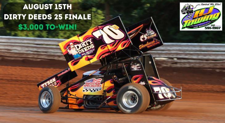 Mechanicsburg —Friday night, August 15 will be the Dirty Deeds 25 Finale for HJ Towing & Recovery 358 sprint cars at Williams Grove Speedway.