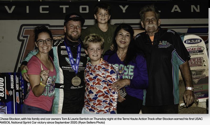 Terre Haute, Indiana (July 31, 2025)………The Terre Haute Action Track has been home to many a great race and moment over the past 70-plus seasons, and Chase Stockon’s stirring drive to victory on Thursday night certainly added to the 1/2-mile dirt oval’s legendary lore.