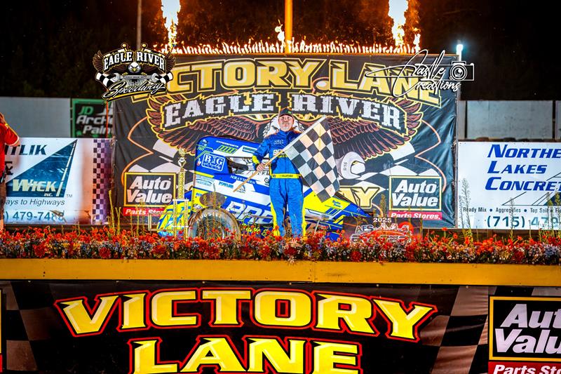 The unique Eagle River Raceway Victory Lane, with flames shooting into the sky, welcomed Kluever. In his postrace interview with Eric Huenenfeld it was noted that the race took only six minutes and fifteen seconds. Kluever thanked his crew and Brandon Waelti for their work and advice. He gave credit to Jones for his streak.