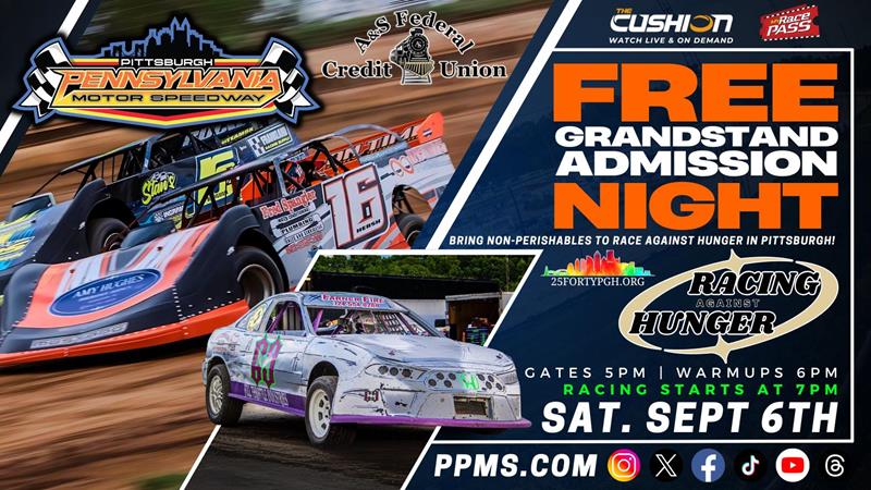 Imperial, PA — Pittsburgh Pennsylvania Motor Speedway (PPMS) is proud to announce that Saturday, September 6th, will serve as the official rain date for the highly anticipated Free Grandstand Admission Night, presented by A&S Federal Credit Union. Originally scheduled for June 28th, this community-focused event will return bigger and better with a powerful new purpose: fighting hunger across our region.