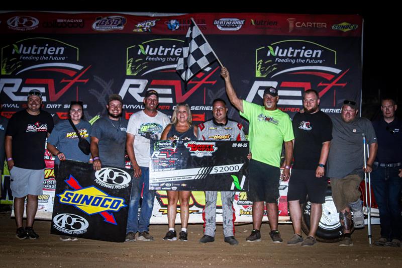 Starting the action on Friday at Monett with thirty entries, REV would see Scott Crigler clinch the quick-time in qualifying with a lap of 15.980 seconds, with Cole Wells, Chevy Boyer, and Brandon Conkwright each earning heat racing qualifier victories as well as Jim Body emerging victorious in the semi-feature as Justin Wells attained the high-point qualifier award through a dash win.