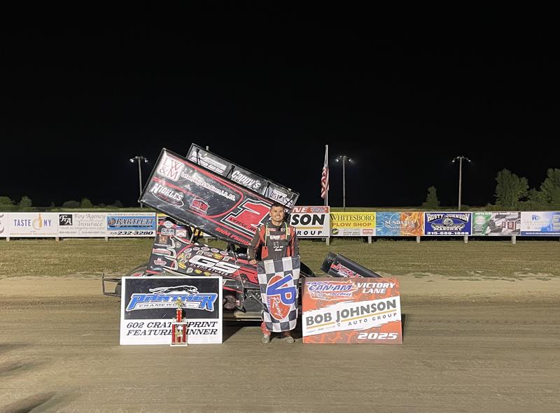 Josh Verne Jr. has had a solid consistent season in the Panther Frameworx Crate Sprint Car division and was fast on the night coming from last to first in 1 lap to win his heat. At the start of the 20 lap feature he did close to the same thing charging from 6th to 2nd on the opening lap as Nick Webb led the way. The lead was short lived as Verne powered by on the high side to grab the lead and run away from a quality field on this night. With a 6 point lead Verne knew the task was simple, win the race, second in points Bruno Richard knew his task was simple, if we can’t win the race, keep the 1V close and that’s what he did as Richard charged to second around Nick Webb but had over a straight away to make up, with three time winner Andrew Hennessy running a strong third. Without a yellow flag, Josh Verne Jr. was not to be denied on this night as he dominated for his third win if the year and 18th career Can Am Crate Sprint Car win, the most all time. Bruno Richard crossed in second, with Nick Webb, Andrew Hennessy and Rachel Zacharias holding on to 5th at the checkers.