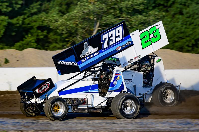 BRADFORD, Vermont (August 18, 2025) – Nick Kruger needed a good night, and he had the best one possible at Bear Ridge Speedway on Saturday, August 16. The sophomore driver on the McGee Automotive Family Sprint Cars of New England Tour (SCoNE) swept victories in his qualifying heat and the 25-lap A-Main feature race to earn his first-ever win on four wheels.