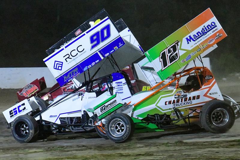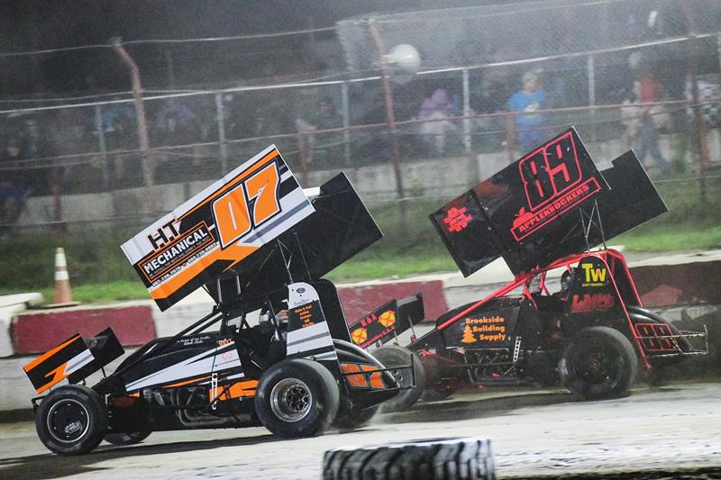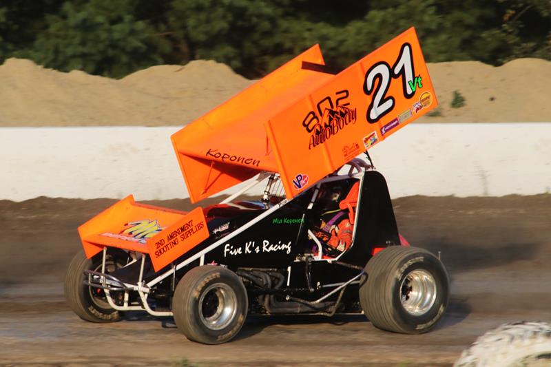 Equally as impressive and celebrated was the effort of young Mia Koponen, who had the best run of her career in a full-size Sprint Car. The Ludlow, VT racer had honed her craft on the tough-as-nails Sprint Car scene in Pennsylvania for the past several seasons without much success, but her family team joined SCoNE in July and have been showing major improvement. Koponen raced in second place until the caution flag, and her underpowered 305-cubic-inch engine was somewhat swallowed up by some of the top-running 360s on the restart. Still, Koponen finished sixth for the second race in a row, matching her career-best.