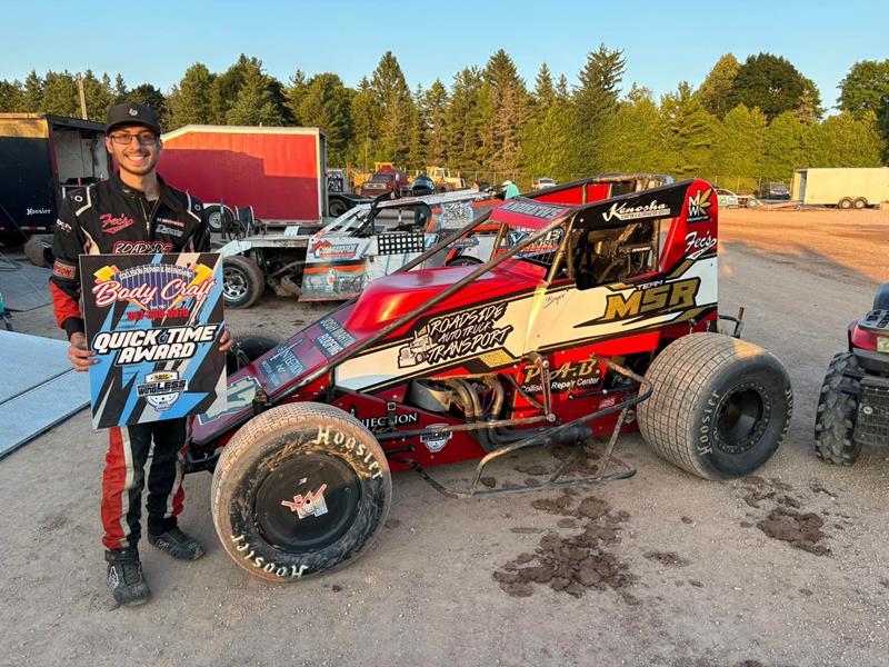 Kenosha's Bryce Andrews posted a new track record of :15.601 seconds in Body Craft qualifying eclipsing the mark set a year earlier of :15.632 seconds by Zach Raidart of Gurnee, IL who also won the inaugural feature.