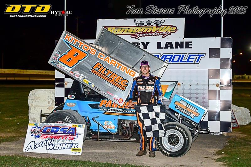RANSOMVILLE, NY (September 5, 2025) Savannah, NY’s Dillon Paddock won the CRSA Sprints feature at the Ransomville Speedway on Friday night. For Paddock, it was his second Ransomville win of the season. Penn Yan, NY’s Jimmy Grant won the eighth John Susice Memorial for the KiPo Chevrolet Street Stocks as VanDeMark Chemical and MDM Painting presented the racing action. Cody McPherson from St. Catharines, Ontario won the Stirling Lubricants DIRTcar Sportsman feature for his third win of the season. Chris Leone from Niagara Falls, NY won the Sunflowers of Sanborn Mini Stocks feature. Madyson Rouse from Fort Erie, Ontario won the Kevin’s Carpet Cleaning Novice Sportsman feature.